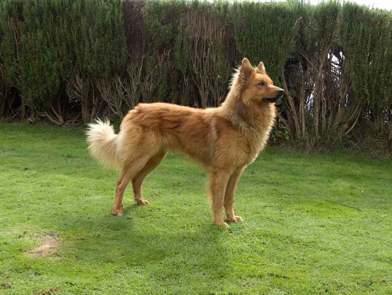 Баскская овчарка — достаточно крупная, пропорционально сложенная собака с длинным телом. Морда узкая и длинная. Уши полувисячие, высокорасположенные, имеют треугольную форму. Лапы средней длины, мускулистые. Хвост пушистый, саблевидный. Окрас рыжего цвета, шерсть очень густая, но средней длины. Вес 17 — 36 кг. Рост кобелей в среднем 60 см, сук 55 см.